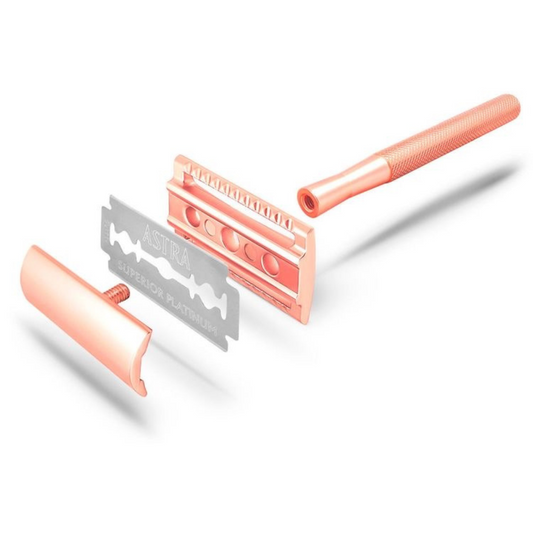 Escoge tu rasuradora reutilizable 100% de acero inoxidable en alguno de los 4 colores: Negro, Plateado, Dorado y Oro rosa.